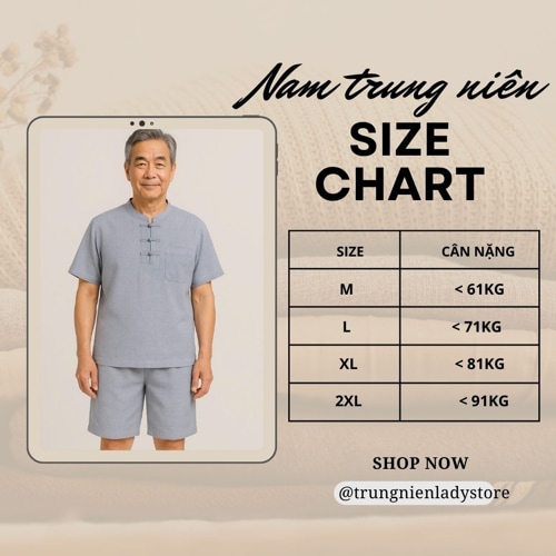 Hiểu rằng bố và ông ở tuổi 70–80 không cần phải mặc quá lộng lẫy nhưng vẫn phải đảm bảo đẹp và thật thoải mái, Lady Store đã thiết kế riêng dòng đồ bộ đũi hè trung niên cao cấp, mang lại sự lịch lãm, dễ chịu và chỉn chu trong từng chi tiết.