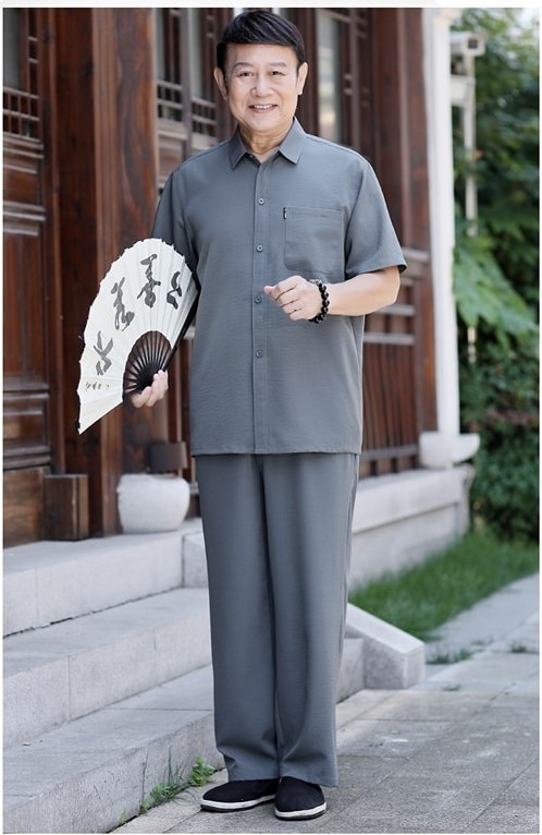Đồ bộ đũi hè cổ sơ mi cho ông, bố tuổi 70–80 | Lady Store